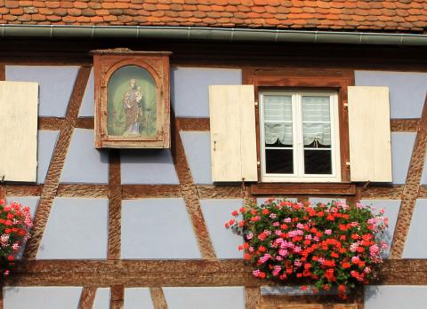 Ebersheim est située en plein cœur de l’Alsace, dans le Ried. A pied ou à vélo, tout au long de l’année, en vous promenant au fil des rues de ce village, vous pourrez découvrir sur le pignon ou sur la façade des maisons et même dans le bardage des granges ou des séchoirs à tabac, de remarquables exemplaires de niches protectrices. Il en existe plus d’une trentaine. Etonnant non pour ce petit village proche de Sélestat berceau de l’humanisme Rhénan.
